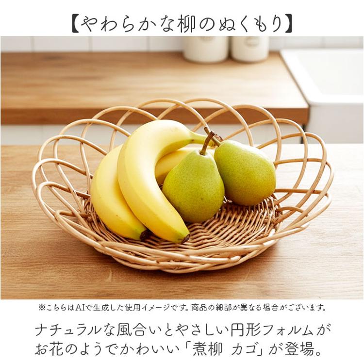 ・ナチュラルな風合いとやさしい円形フォルムがお花のようでかわいい「煮柳 カゴ」が登場。