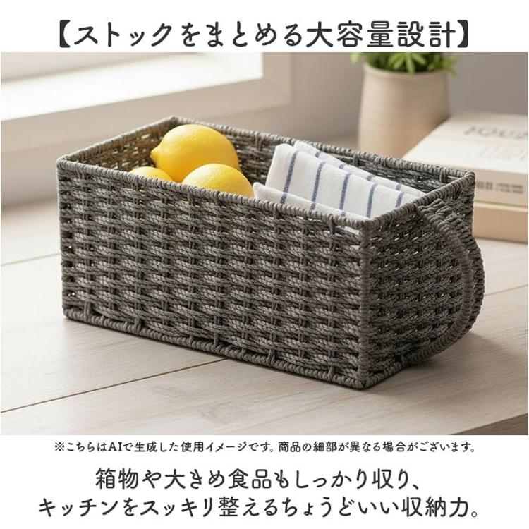 ・優しい素材感が心地よい空間をつくる♪「パントリーバスケット取手付きL」。