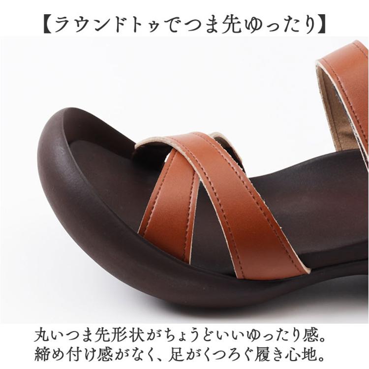 ・コロンと丸みを帯びたフォルムが印象的なソールと、クロスベルトがスタイリッシュなサンダル