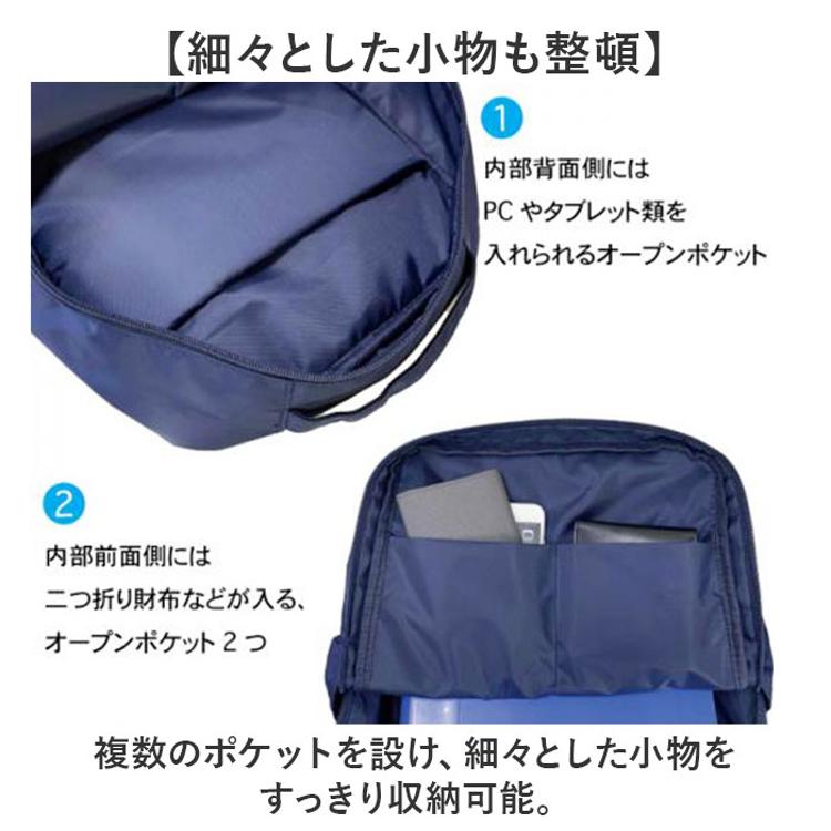 ・背面の収納内にウレタン入りのポケットを搭載し、電子機器を安全に持ち運び可能。
