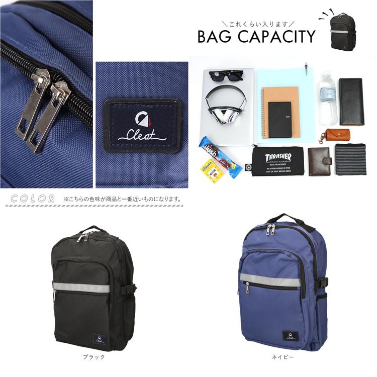 CLEAT クリート デイパック メンズ 8291 通販 リュック リュックサック バックパック メンズバッグ メンズバック シンプル 無地 反射テープ 通勤 通学 普段使い 大人 ポケット アウトドア