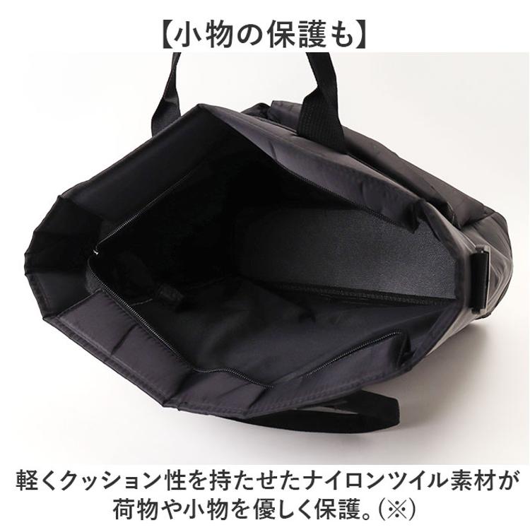 ・軽くクッション性を持たせたナイロンツイル素材が荷物や小物を優しく保護。※