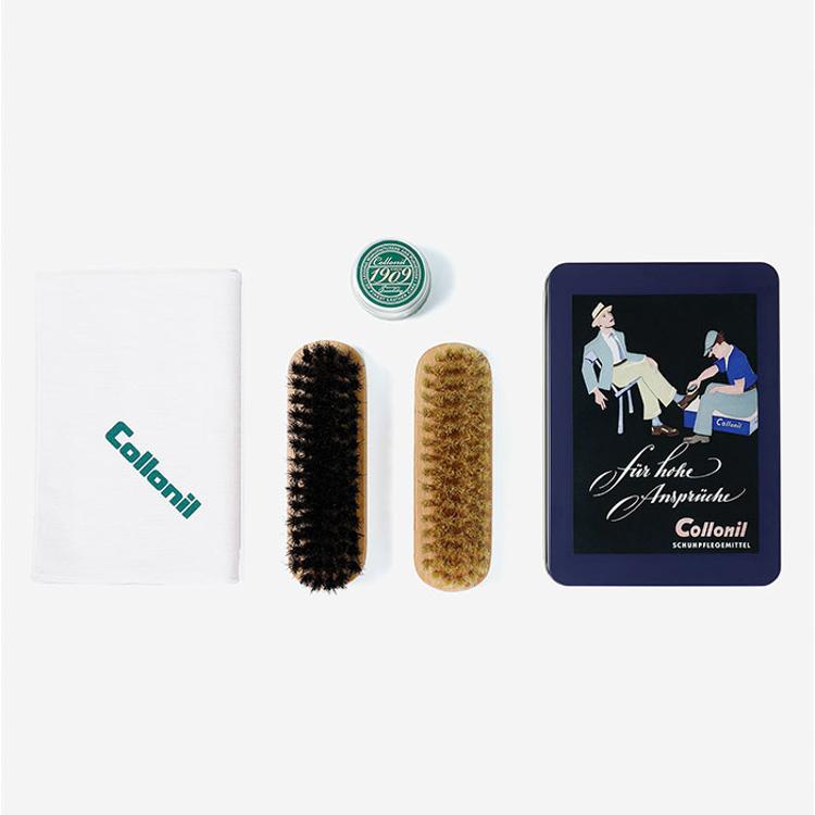 ・革靴を美しく保つ、ドイツ製本格シューケア用品「1909レザーケアセット レトロ缶」。