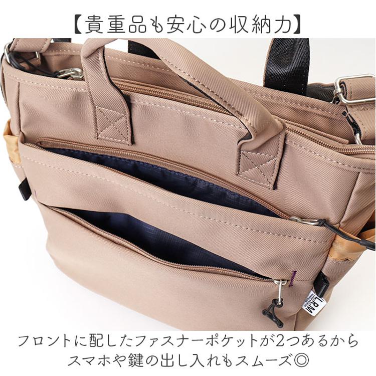 ・持ち方自在、軽やかに決まる「L.R.M 隠しジップ2WAY手提げショルダー」。