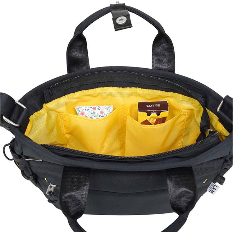 ・内側には小さめのボトルが入るホルダーとオープンポケット2つを備えていて中身もすっきり〇