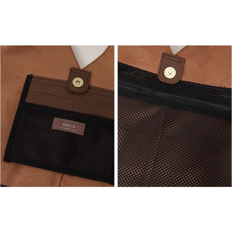 ・オープンタイプとファスナータイプのメッシュポケットが付いていて、中身が見えやすく嬉しい。