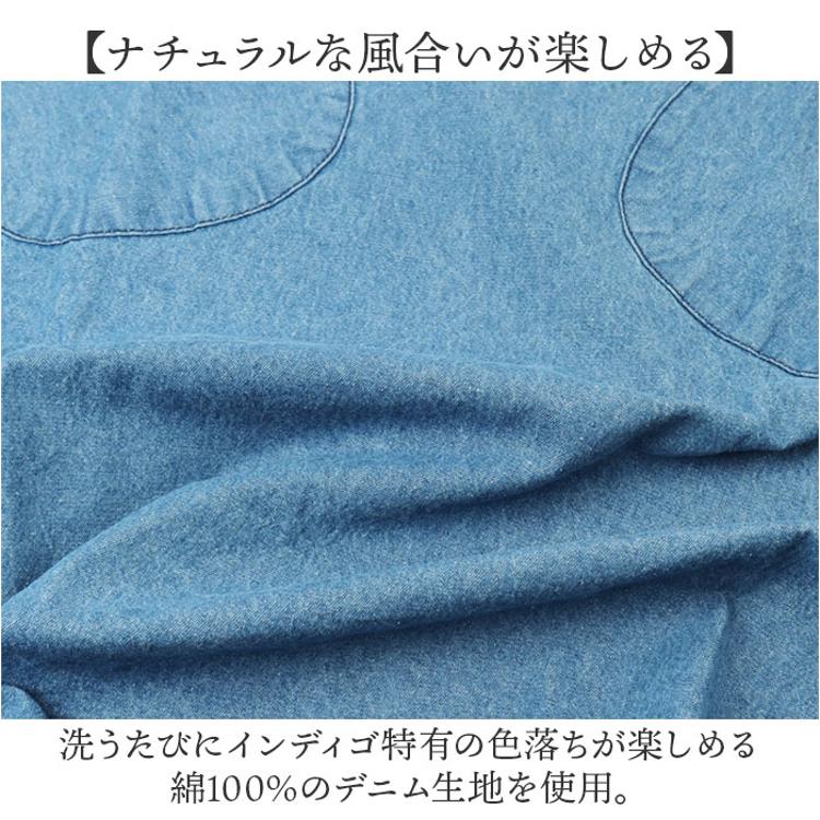 ・洗うたびにインディゴ特有の色落ちが楽しめる綿100%のデニム生地を使用。