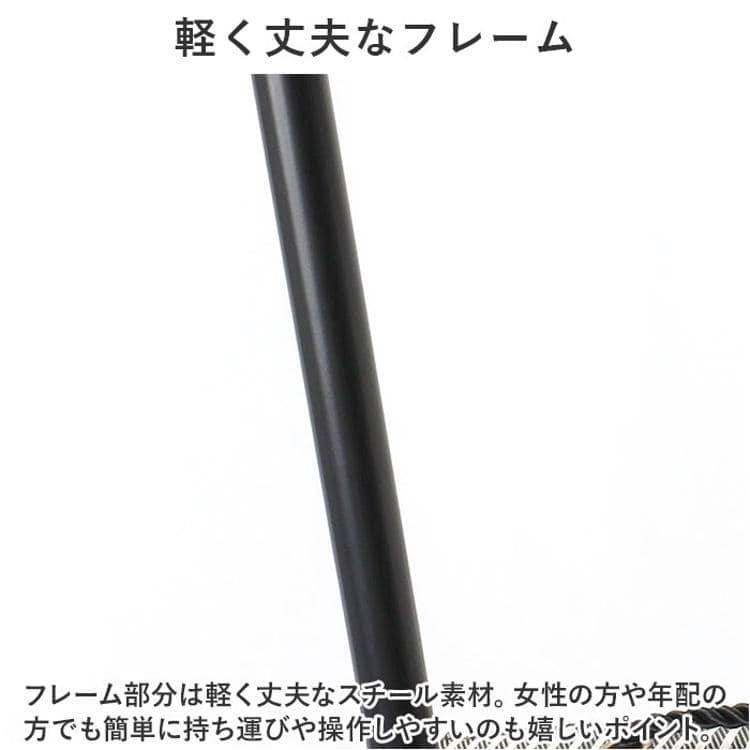 ・フレーム部分は軽く丈夫なスチール素材。女性の方や年配の方でも簡単に持ち運びや操作しやすいのも嬉しいポイント。