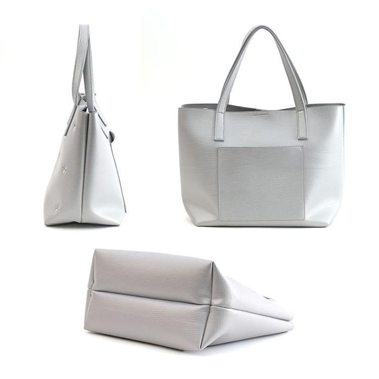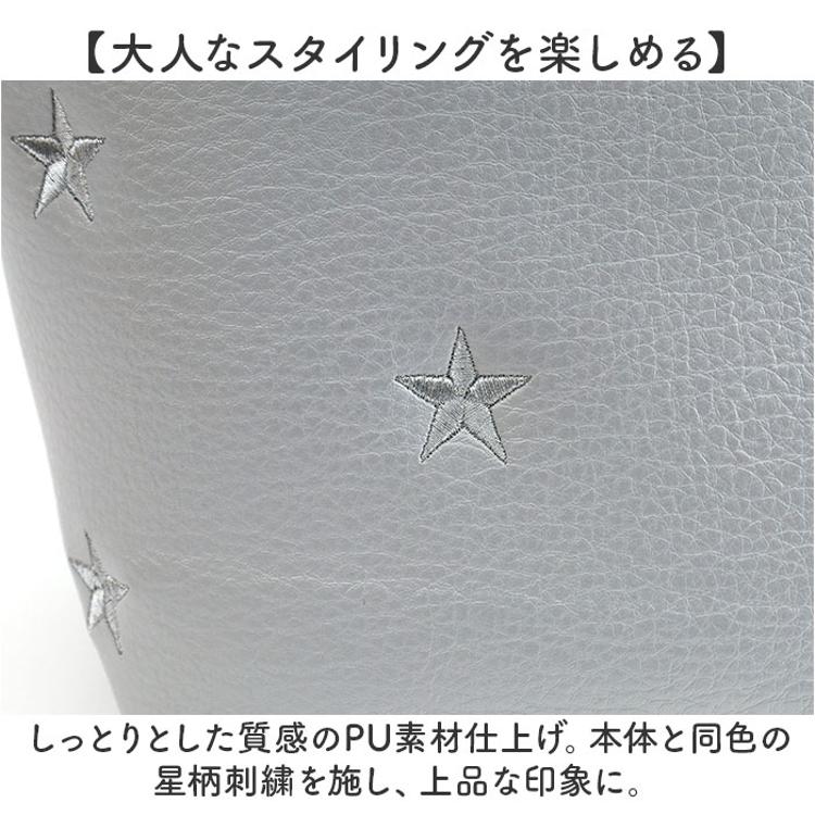 ・しっとりとした質感のPU素材仕上げ。本体と同色の星柄刺繍を施し、上品な印象に。