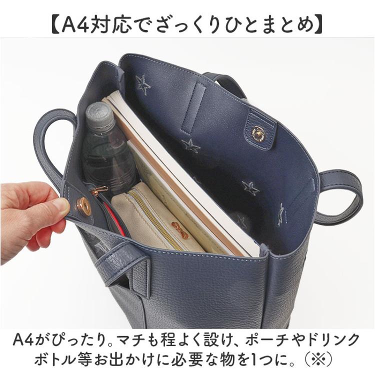 クーコ cooco トートバッグ 25131-11010 通販 トートバック レディース A4 通勤 通学 大きめ 大人 かわいい おしゃれ 可愛い オシャレ きれいめ 横型 横長 大容量 肩掛け 合皮