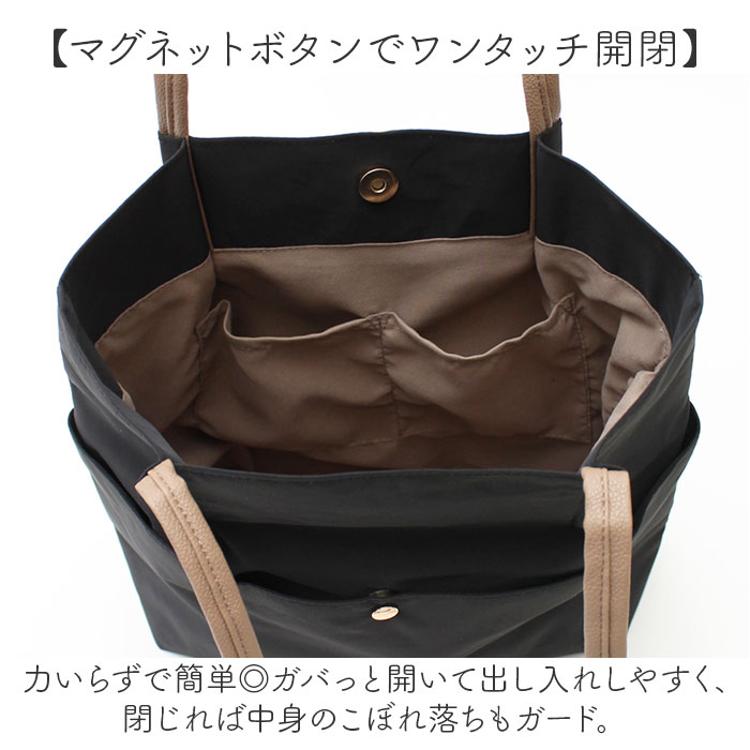 ・コーデを選ばないデザイン◎使い勝手もばっちりな「コンビシンプルタックトート」。