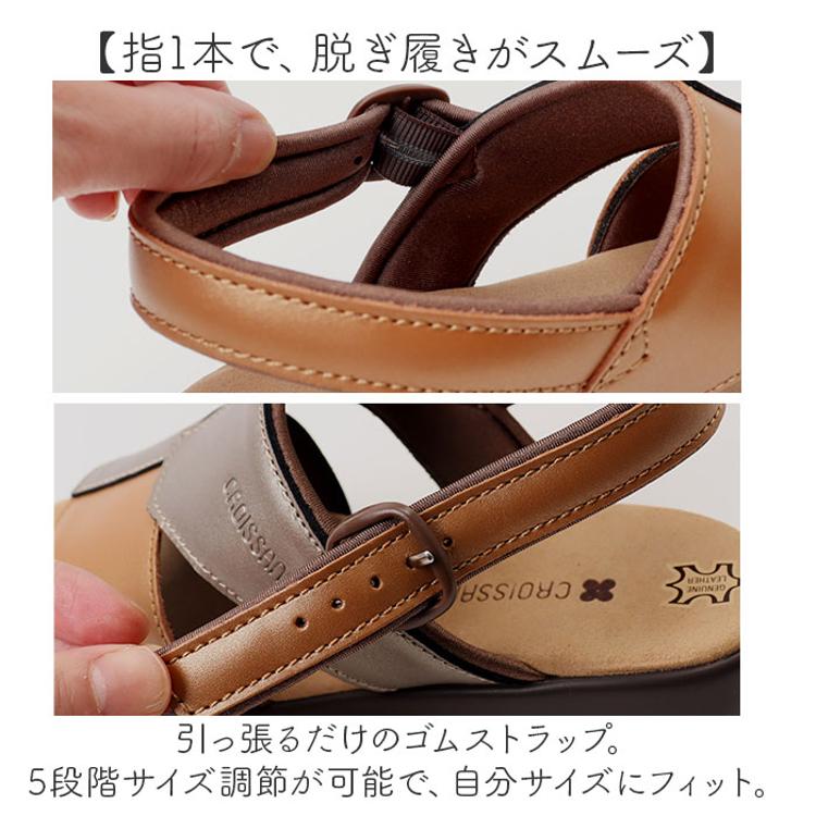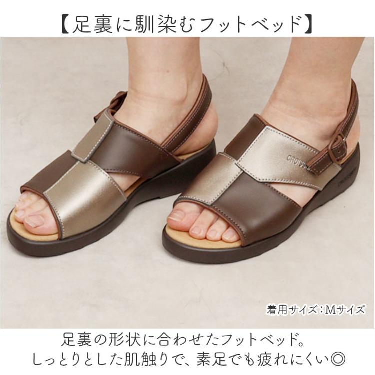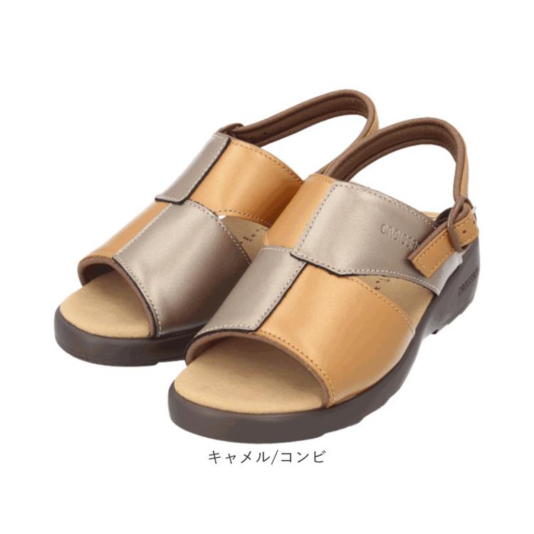 クロワッサン サンダル CR4599 通販 日本製 レディース ストラップサンダル ローヒール ヒール 4cm 本革 やわらかい 歩きやすい おしゃれ 切り替え 配色 シンプル オシャレ かわいい