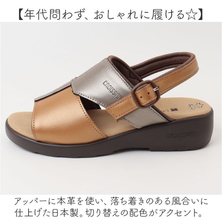 クロワッサン サンダル CR4599 通販 日本製 レディース ストラップサンダル ローヒール ヒール 4cm 本革 やわらかい 歩きやすい おしゃれ 切り替え 配色 シンプル オシャレ かわいい CROISSANT レディース靴