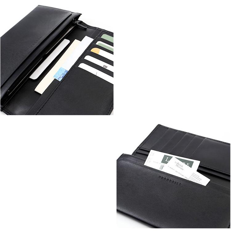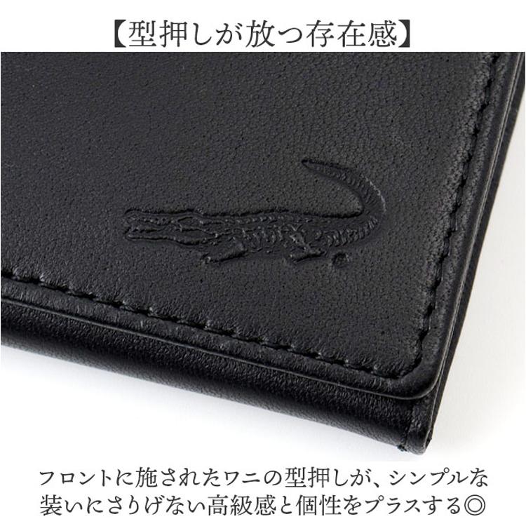 ・ワニの型押しが効いたシープスキン素材の薄型長財布。