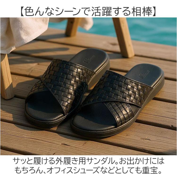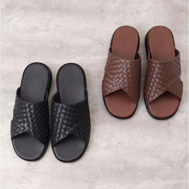 ・編み込んだような型押しレザー調。味わいを醸し出すサンダル「M+home クロワゼ」。