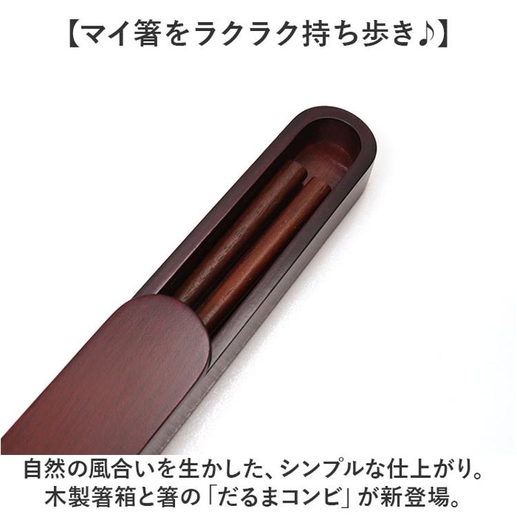 ・自然の風合いを生かした、シンプルな仕上がり。木製箸箱と箸の「だるまコンビ」が新登場。