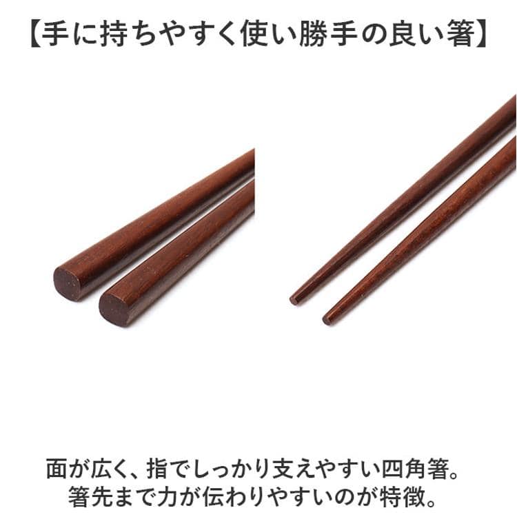 ・面が広く、指でしっかり支えやすい四角箸。箸先まで力が伝わりやすいのが特徴。
