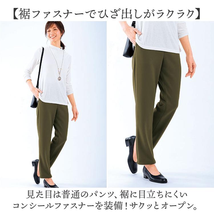 ・シンプルなパンツに見えて、とっても便利◎「快適裾ファスナー付きパンツ」。