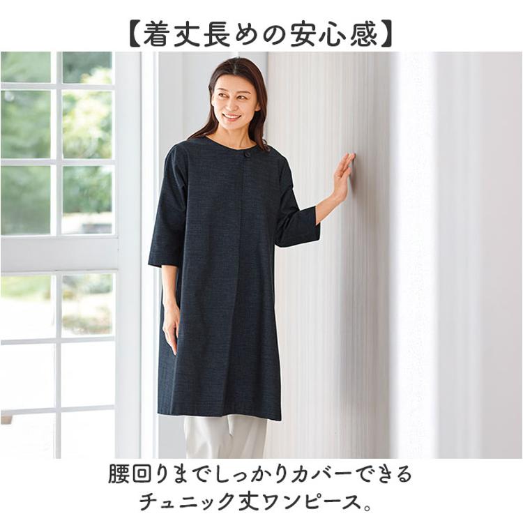 ・腰回りまでしっかりカバーできるチュニック丈ワンピース。