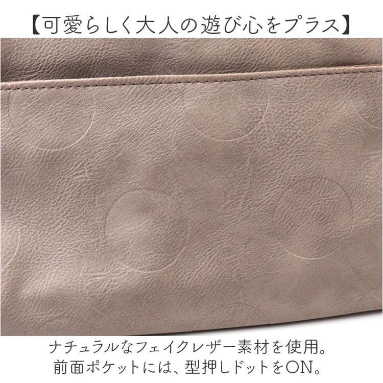 ・ナチュラルなフェイクレザー素材を使用。前面ポケットには、型押しドットをON。