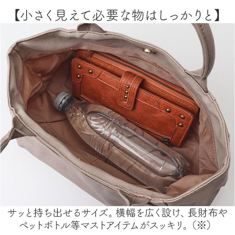 ・サッと持ち出せるサイズ。横幅を広く設け、長財布やペットボトル等マストアイテムがスッキリ。