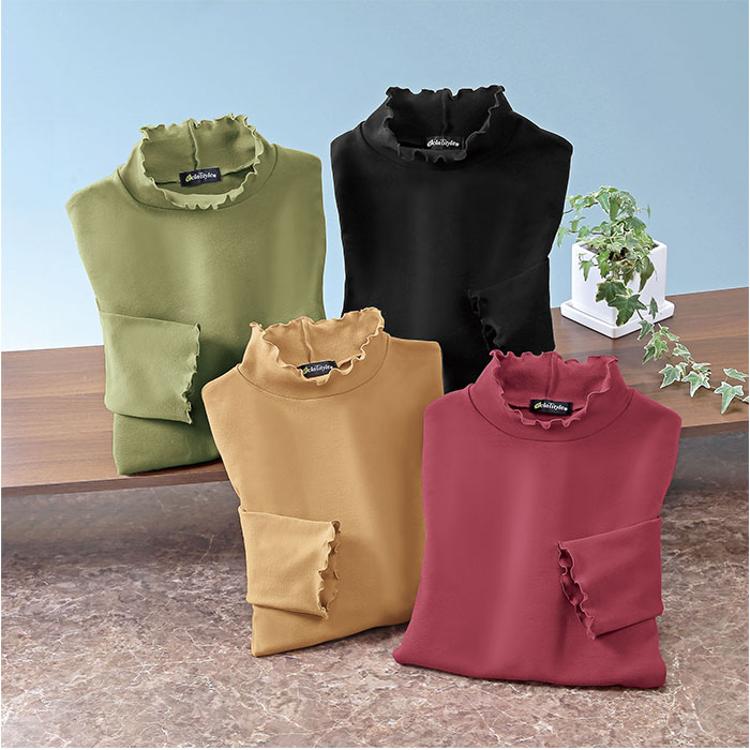 ・蓄熱・保温で寒い季節もおしゃれに快適「eclaT style 綿100%微起毛メロータートルプルオーバー」。