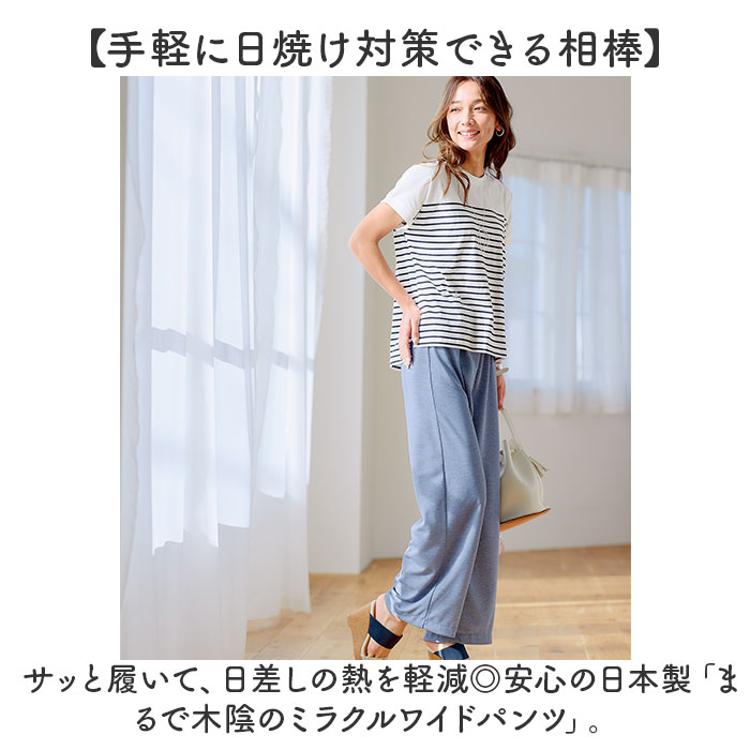 ・サッと履いて、日差しの熱を軽減◎安心の日本製「まるで木陰のミラクルワイドパンツ」。