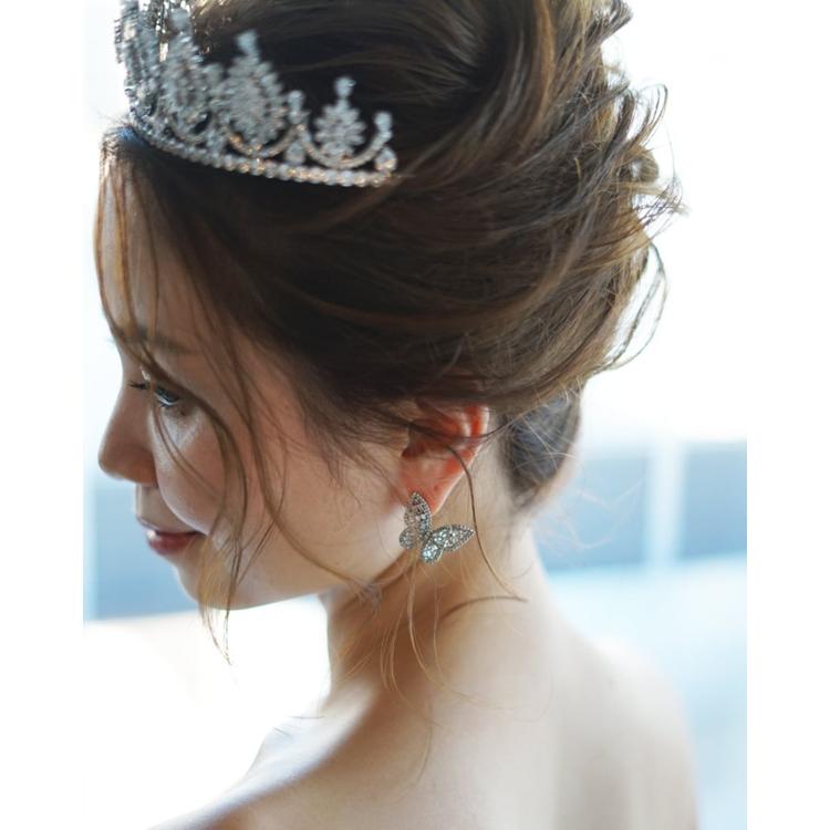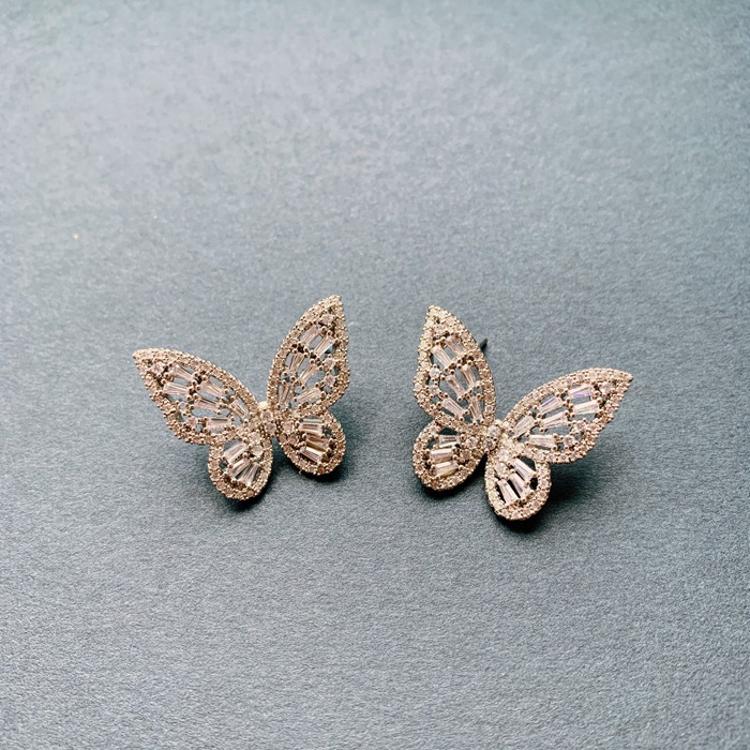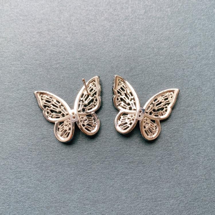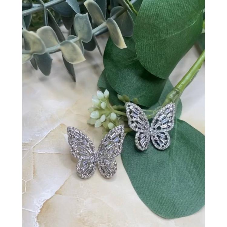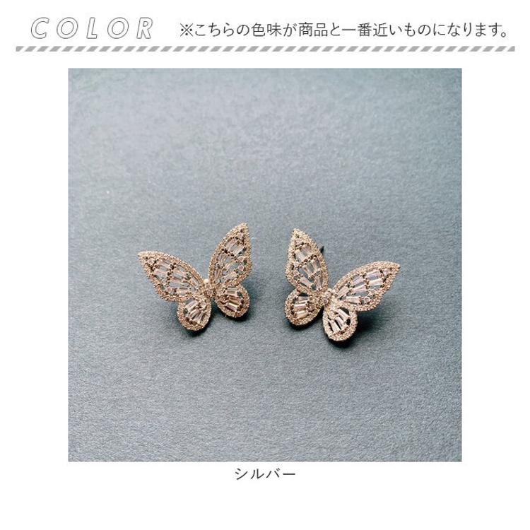 ・繊細にセッティングされた、キュービックジルコニアがキラキラと輝くバタフライモチーフのピアス