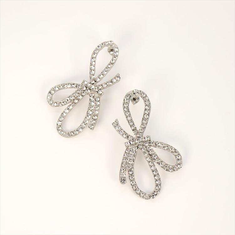 ・リボンモチーフにクリスタルを繊細にセッティングしたピアス