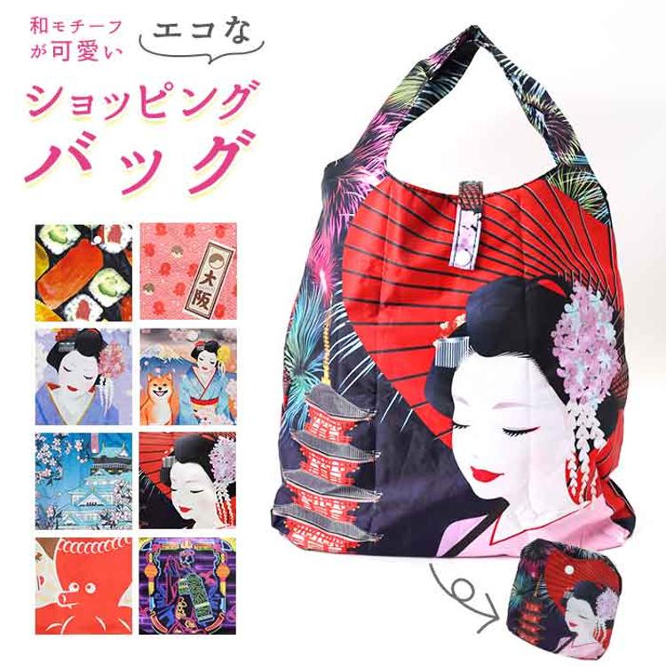 エコバッグ ポリエステル 通販 エコバック マイバッグ ショッピングバッグ 買い物バッグ レジ袋 バッグ ノルコーポレーション 折りたたみ 折り畳み コンパクト 軽量 マチ広 大容量 日本 和柄 かわいい おしゃれ オシャレ お洒落