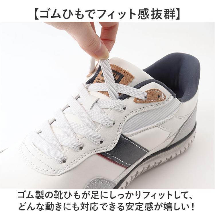 ・ゴム製の靴ひもが足にしっかりフィットして、どんな動きにも対応できる安定感が嬉しい!