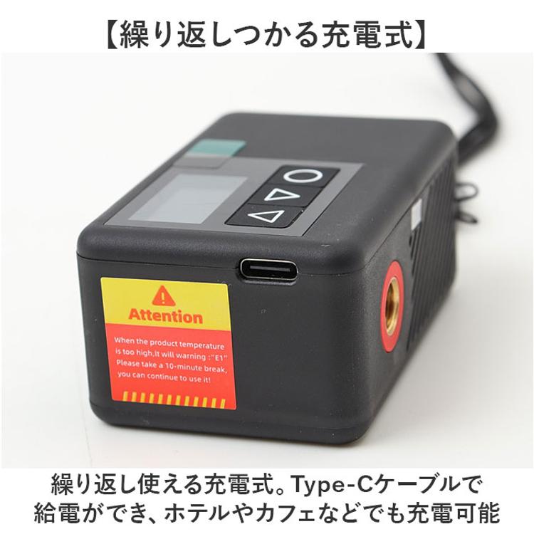 ・繰り返し使える充電式。Type-Cケーブルで給電ができ、ホテルやカフェなどでも充電可能