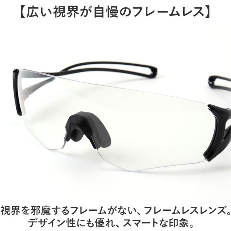 ・視界を邪魔するフレームがない、フレームレスレンズ。デザイン性にも優れ、スマートな印象。