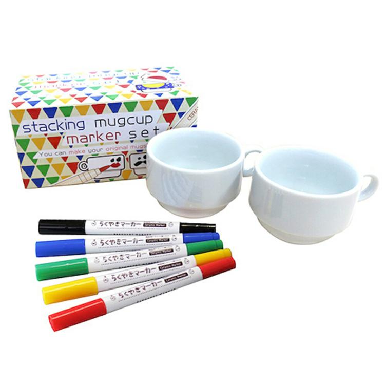 らくやきマーカー コーヒーカップ マーカー セット 通販 マーカーペン ペン ペアカップ カップ スタッキング マグカップ クラフト DIY 陶磁器 陶器 らくやきマーカーシリーズ らくやき
