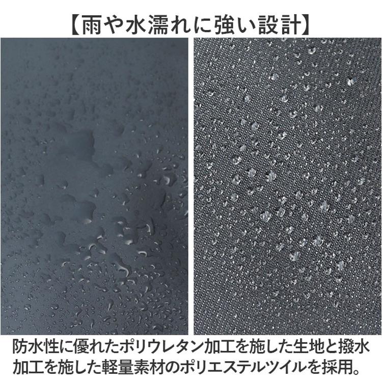 ・防水性に優れたポリウレタン加工を施した生地と撥水加工を施した軽量素材のポリエステルツイルを採用。