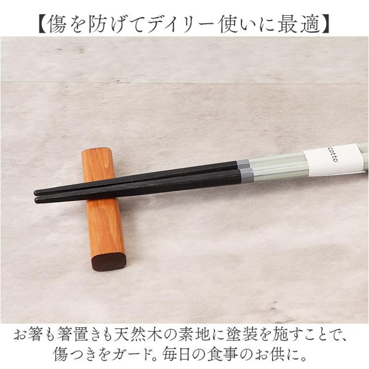・お箸も箸置きも天然木の素地に塗装を施すことで、傷つきをガード。毎日の食事のお供に。