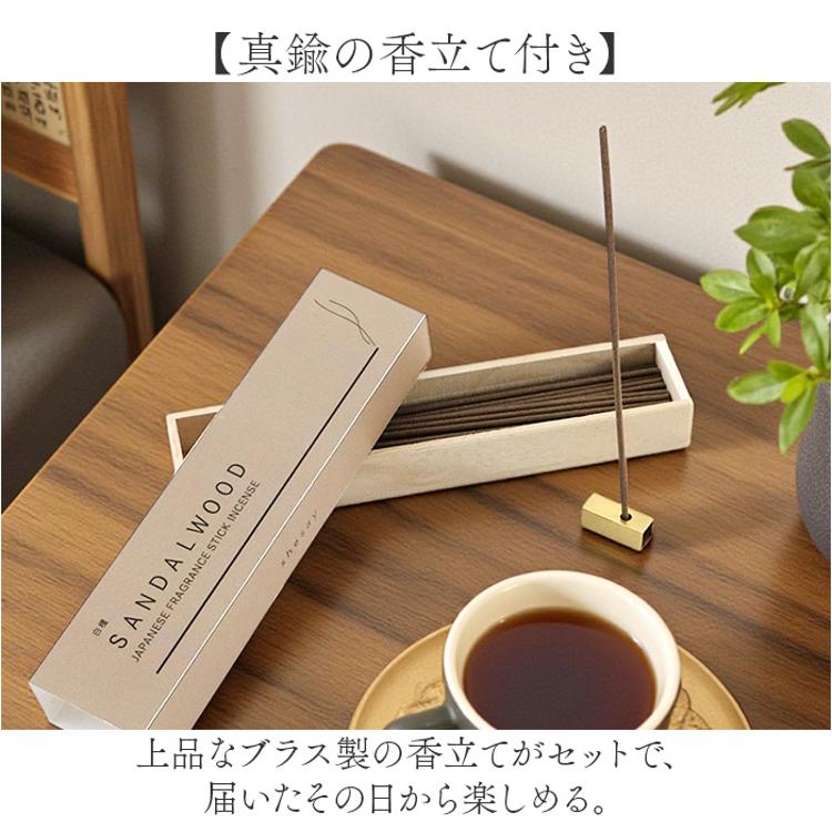 ・上品なブラス製の香立てがセットで、届いたその日から楽しめる。