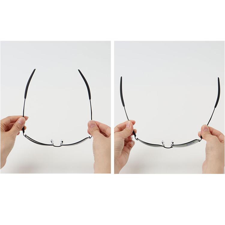 ・フレームの折り曲げ部分にバネを搭載し、頭部に合わせてフレームが広がることでフィットする