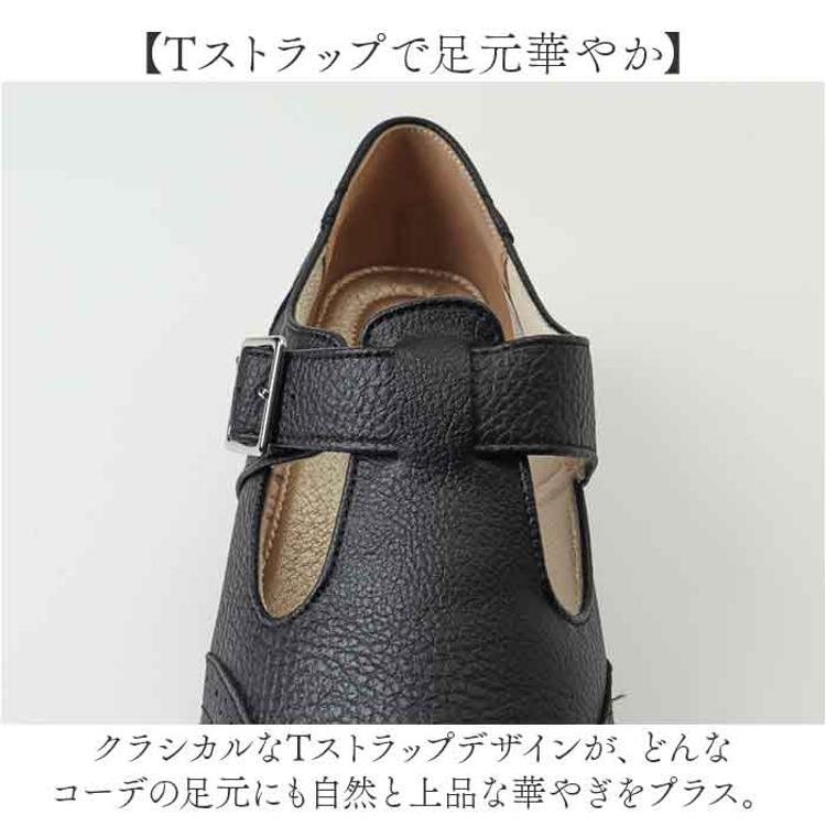 ・クラシカルなTストラップデザインが、どんなコーデの足元にも自然と上品な華やぎをプラス。