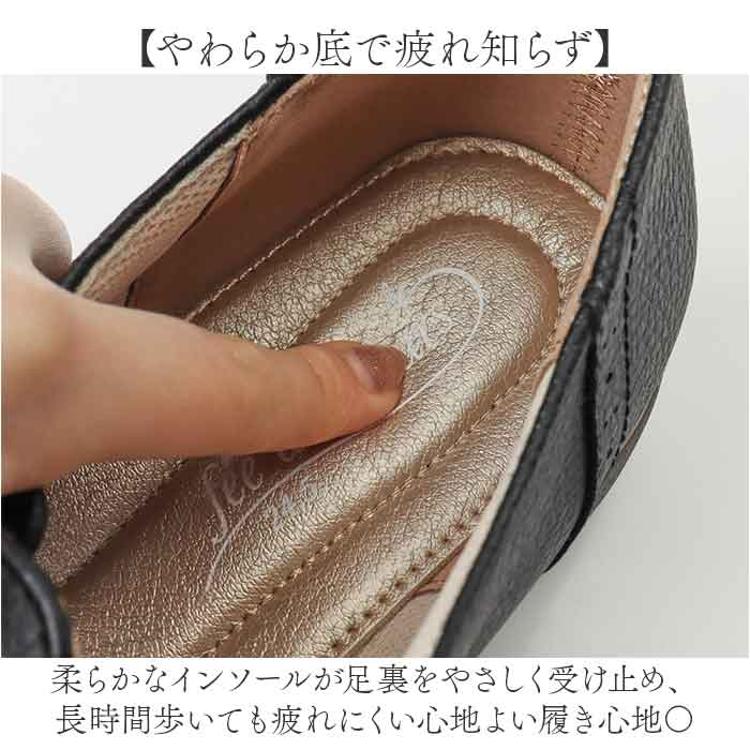 ・柔らかなインソールが足裏をやさしく受け止め、長時間歩いても疲れにくい心地よい履き心地〇