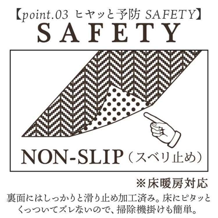 ・裏面にはしっかりと滑り止め加工済み。床にピタッとくっついてズレないので、掃除機掛けも簡単。