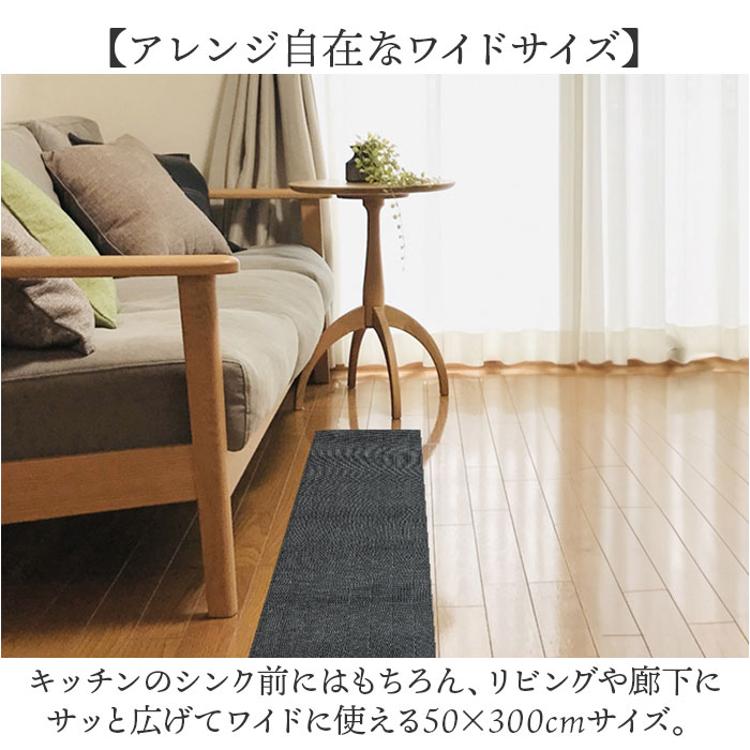 ・キッチンのシンク前にはもちろん、リビングや廊下にサッと広げてワイドに使える50×300cmサイズ。