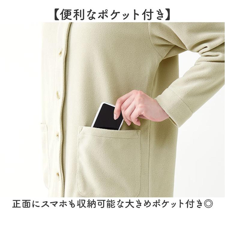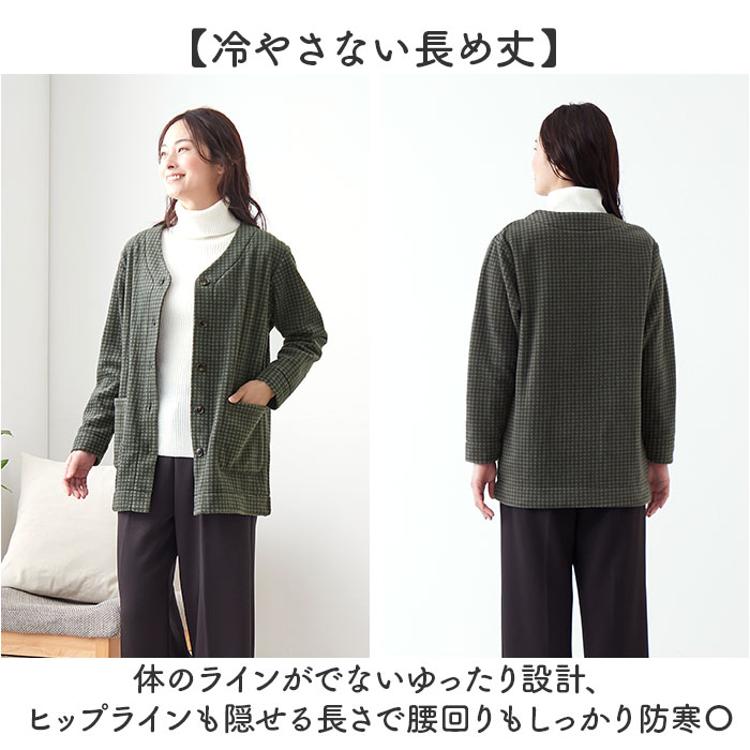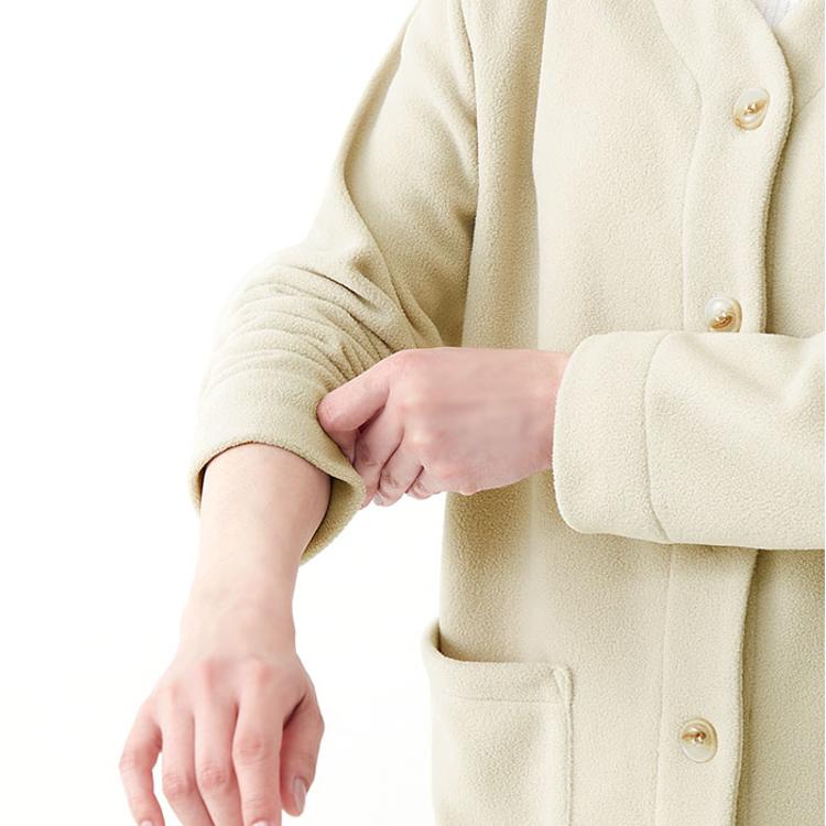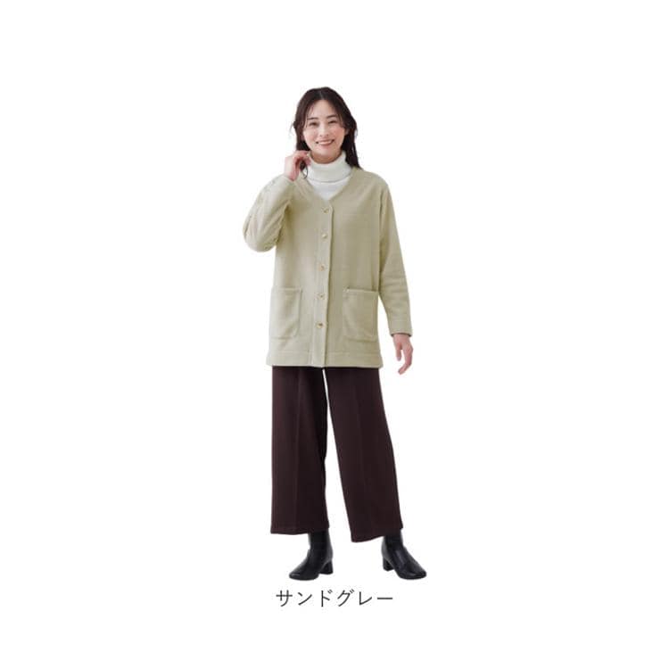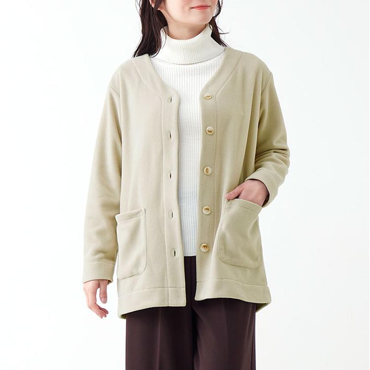 ・両面起毛のフリース素材で仕上げた、冬でも暖かいカーディガン。