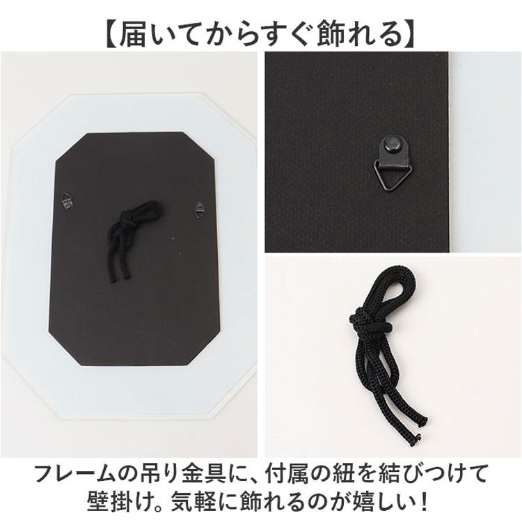 ・フレームの吊り金具に、付属の紐を結びつけて壁掛け。気軽に飾れるのが嬉しい!
