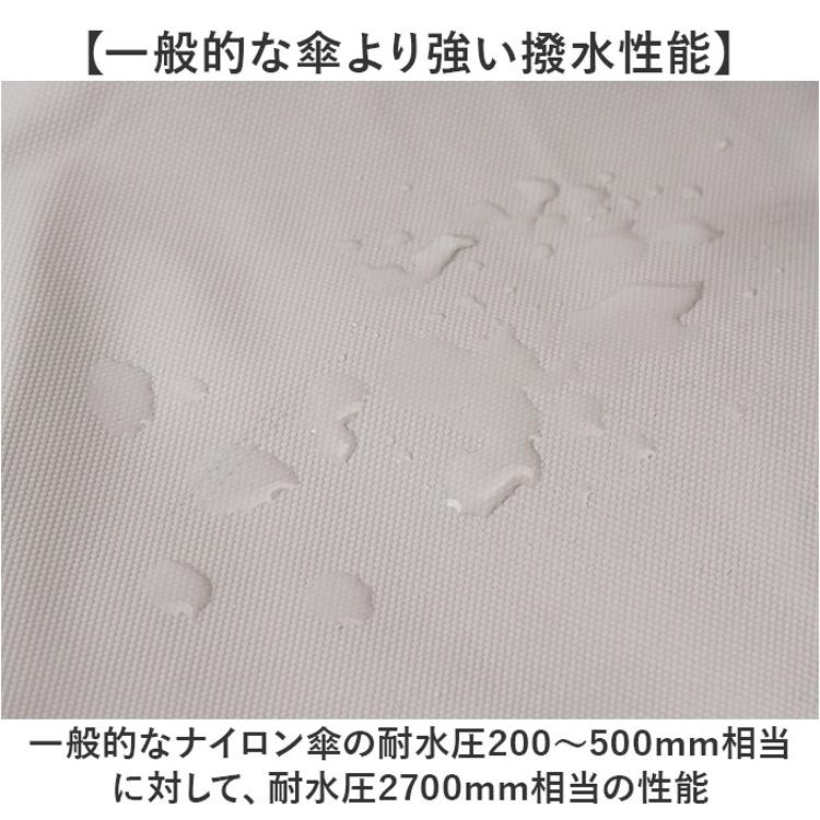 ・一般的なナイロン傘の耐水圧200~500mm相当に対して、耐水圧2700mm相当の性能