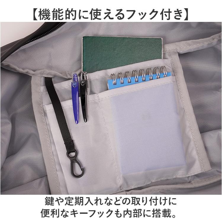 ・鍵や定期入れなどの取り付けに便利なキーフックも内部に搭載。