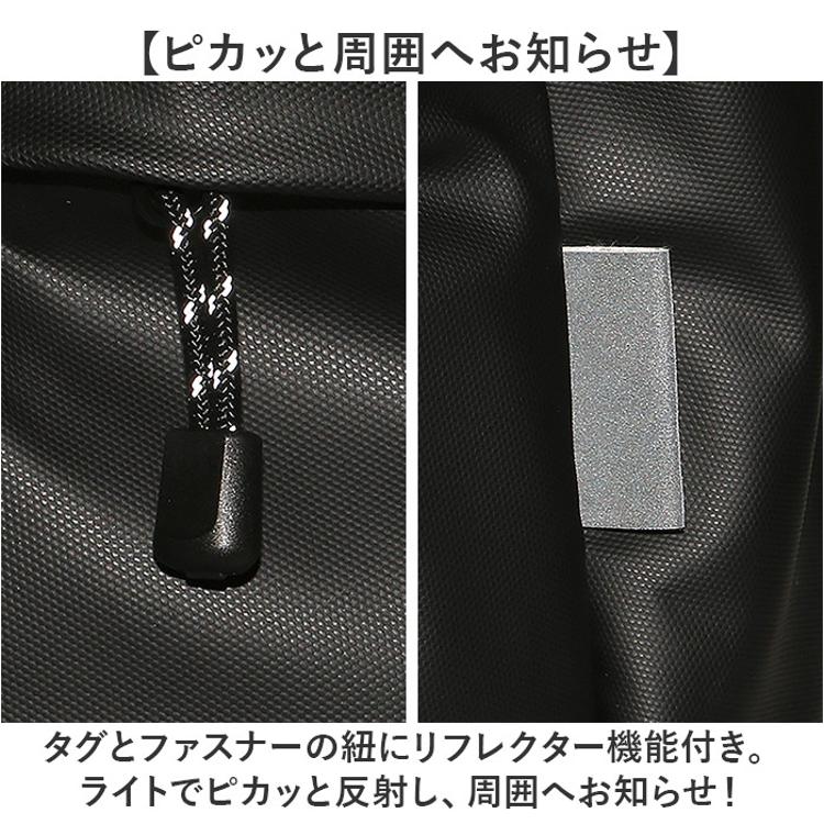 ・タグとファスナーの紐にリフレクター機能付き。ライトでピカッと反射し、周囲へお知らせ!