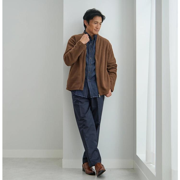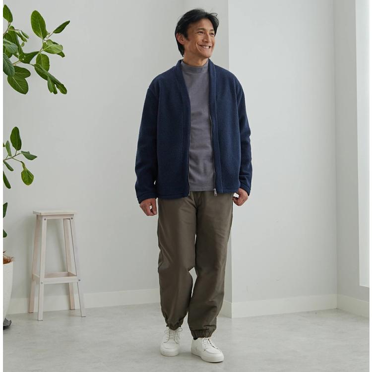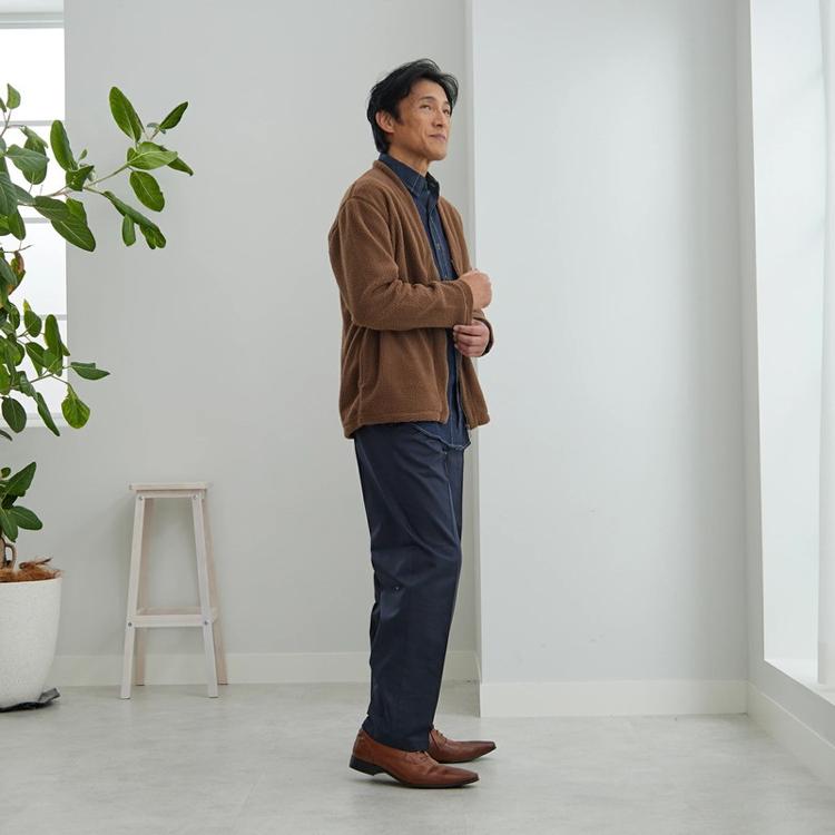 ・襟もとは、少し厚みのある生地とVネックのデザインで、大人の男性らしい印象に。