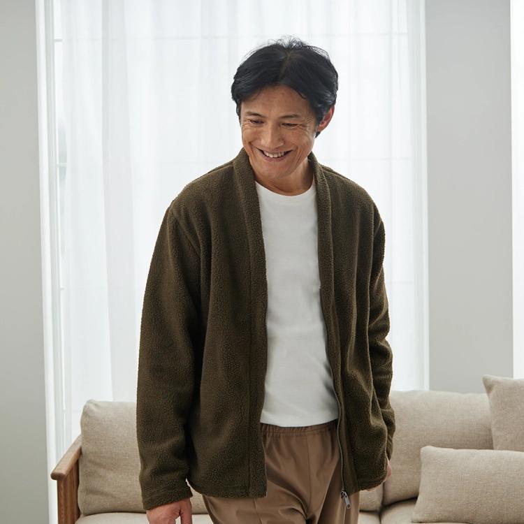 ・柔らかくて動きやすい素材なので、ちょこっと外に出るとも気軽に羽織っていける、ライトボアカーディガンです。
