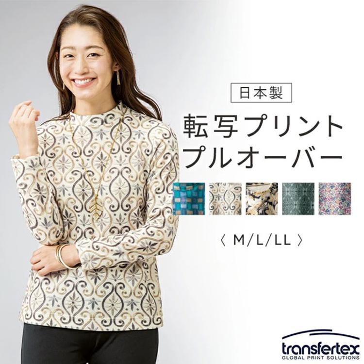 プルオーバー 柄 長袖 レディース 960979 通販 日本製 レディースプルオーバー カットソー シャツ プリント 転写プリント カジュアル 上品 女性 動きやすい 快適 大人 春 秋 冬 トップス